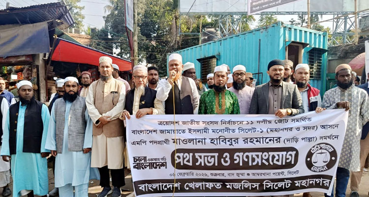 বাংলাদেশ খেলাফত মজলিস সিলেট মহানগর শাখার উদ্যোগে ত্রয়োদশ জাতীয় সংসদ নির্বাচনে ১১ দলীয় ঐক্যজোট সমর্থিত বাংলাদেশ জামায়াতে ইসলামী মনোনীত সিলেট-১ আসনে মাওলানা হাবিবুর রহমানের দাঁড়িপাল্লার সমর্থনে শুক্রবার বাদ জুময়া নগরীর আম্বরখানা পয়েন্টে লিফলেট বিতরণ, গণসংযোগ, পথসভা শাখা সভাপতি জননেতা আলহাজ্ব মাওলানা এমরান আলমের সভাপতিত্বে ও সাধারণ সম্পাদক মুহাম্মদ আব্দুল গাফফারের পরিচালনায় অনুষ্ঠিত হয়।