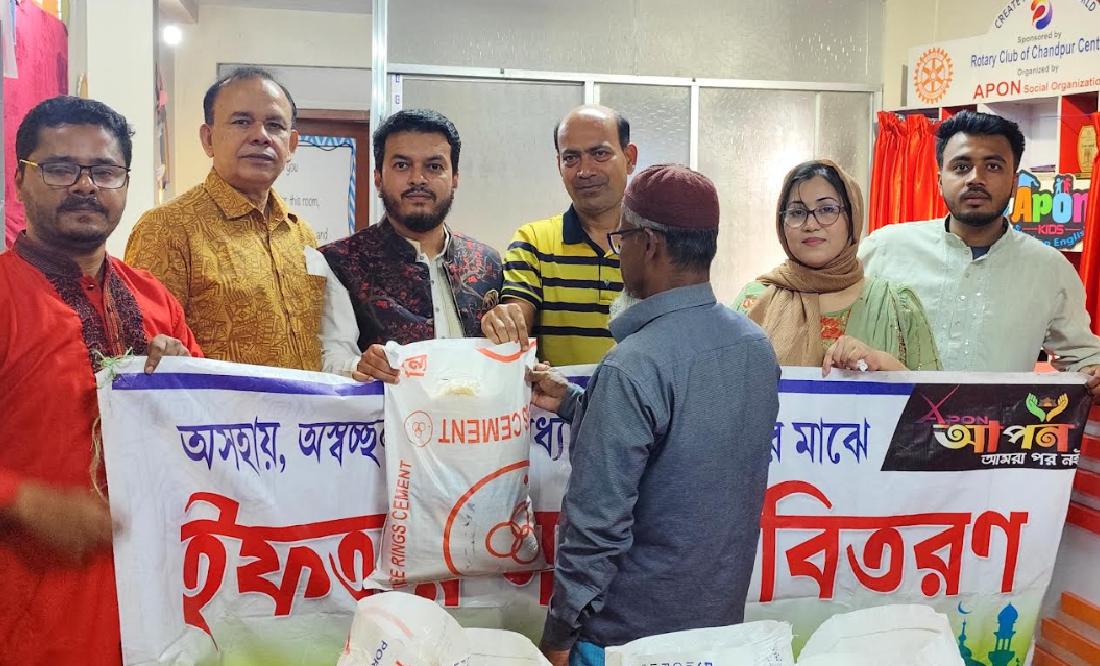 চাঁদপুরে সামাজিক ও স্বেচ্ছাসেবী সংগঠন আপন -এর পক্ষ থেকে প্রতিবছরের ন্যায় এবারও নিম্নবিত্ত, অসচ্ছল পরিবারের মাঝে ইফতার সামগ্রী বিতরণ করা হয়েছে। ২৩ ফেব্রুয়ারি সোমবার বিকেলে শহরের মুক্তিযোদ্ধা ভবনের চতুর্থ তলায় সংগঠনের অস্থায়ী কার্যালয়ে এই আয়োজন করা হয়। অনুষ্ঠানে পবিত্র মাহে রমজানের উপহার হিসেবে অস্বচ্ছল পরিবারের মাঝে ইফতার বাজার তুলে দেওয়া হয়।