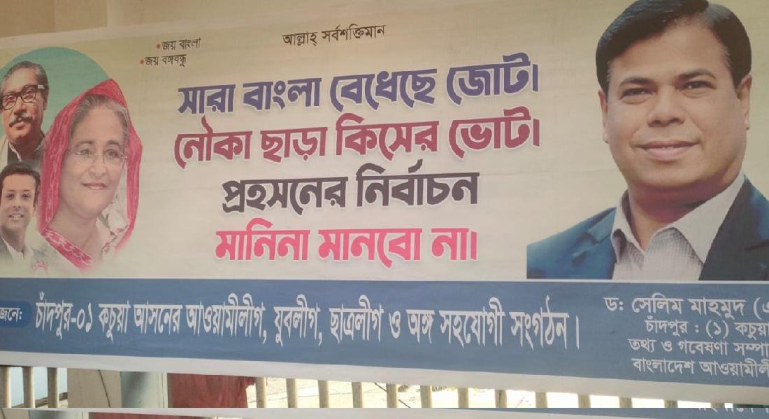 মতলব দক্ষিণ উপজেলা যুবদলের আহবায়ক মোজাহিদুল ইসলাম কিরণ বলেন, আসন্ন ত্রয়োদশ জাতীয় সংসদ নির্বাচনকে বানচাল করতে কচুয়া আসনের সাবেক সংসদ সদস্য ড.সেলিম মাহমুদের ছবি সম্বলিত ব্যানার লাগিয়ে প্রহসনের নির্বাচন মানিনা মনবোনা স্লোগান দিয়ে একটি ঝটিকা মিছিল বের করে