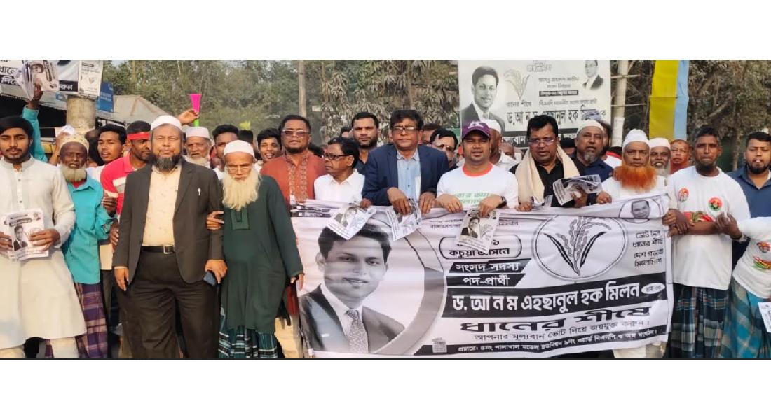 আর মাত্র ৫ দিন পর আগামী ১২ই ফেব্রুয়ারী বৃহস্পতিবার অনুষ্ঠিত হচ্ছে ত্রয়োদশ জাতীয় সংসদ নির্বাচন। এবারের চাঁদপুর-১ কচুয়া আসনের নির্বাচনে ৫ জন প্রার্থী শেষ মুহুর্তের প্রচারণায় ব্যস্ত সময় কাটাচ্ছেন। বিশেষ করে জেলার হেভিওয়েট আসন হিসেবে পরিচিত এ আসনে বিএনপির ধানের শীষের প্রার্থী সাবেক শিক্ষা প্রতিমন্ত্রী ড. আ ন ম এহসানুল হক মিলনের প্রচারণা জোরদার হচ্ছে প্রতিনিয়ত। সাবেক ছাত্রনেতা, যুবনেতা ও বিএনপির কর্মী সমর্থকদের প্রচারণায় জমে উঠেছে এ আসনের নির্বাচনী হাওয়া।