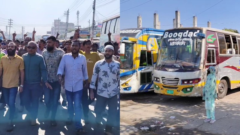 বন্ধ রাখার দাবিতে সকাল থেকে ধর্মঘট পালন করছে পরিবহন বাস মালিক শ্রমিকরা।