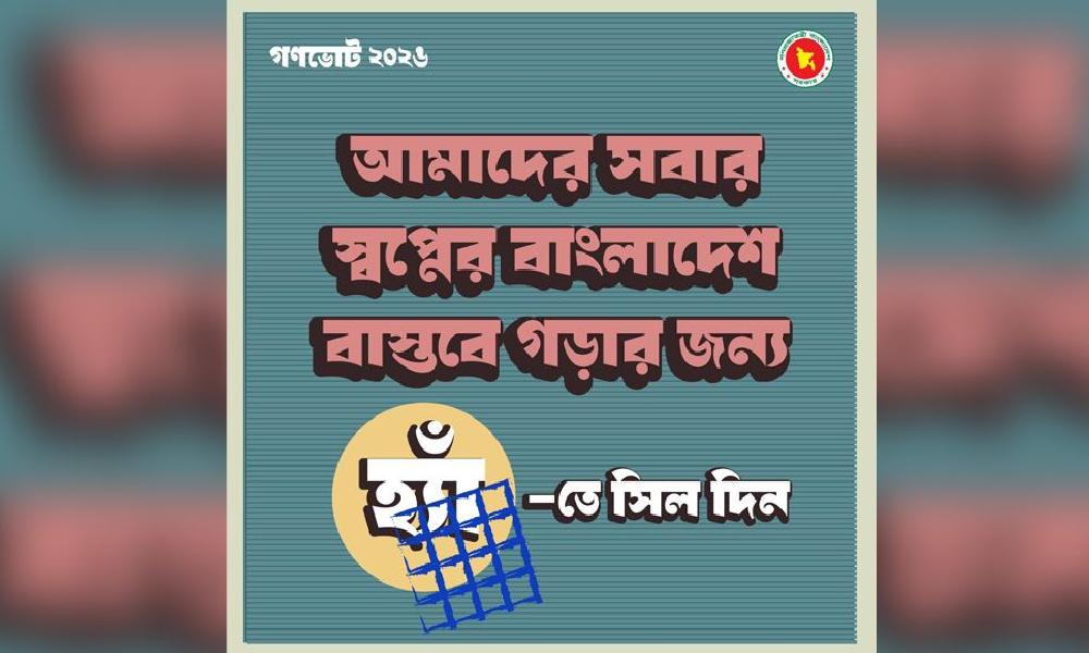রাষ্ট্র সংস্কারে ‘জুলাই সনদ’ বাস্তবায়নে জনগণের অংশগ্রহণ নিশ্চিত করতে ১২ ফেব্রুয়ারি সংসদ নির্বাচনের দিন গণভোটের ঘোষণা দিয়েছে অন্তর্বর্তী সরকার। তারই অংশ হিসেবে গণভোটে ‘হ্যাঁ’ ভোটের পক্ষে প্রচারণায় রোববার (১১ জানুয়ারি) নতুন একটি পোস্টার প্রকাশ করেছে সরকার। যাতে লেখা রয়েছে, ‘গণভোট ২০২৬। আমাদের সবার স্বপ্নের বাংলাদেশ বাস্তবে গড়ার জন্য ‘হ্যাঁ’-তে সিল দিন।’