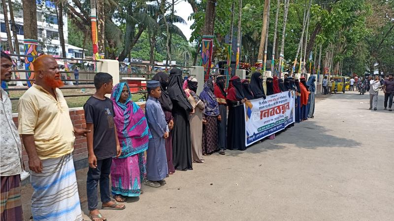 মানববন্ধন থেকে অবিলম্বে তদন্ত করে অভিযুক্তদের বিরুদ্ধে আইনানুগ ব্যবস্থা গ্রহণ এবং বুদ্ধিপ্রতিবন্ধী খাদিজা বেগমের নিরাপত্তা ও সম্পত্তির সুরক্ষা নিশ্চিত করার দাবি জানানো হয়।