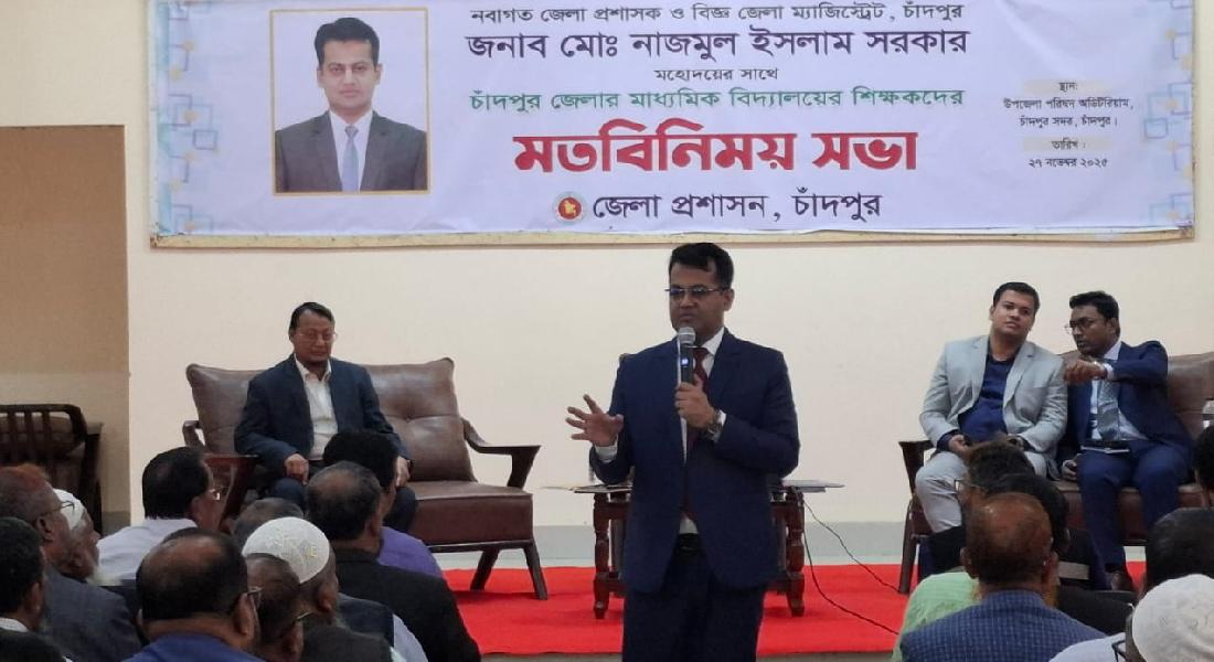 বিদ্যালয়ের শিক্ষাথীদের পড়াশোনার মান বাড়াতে চাঁদপুর জেলার মাধ্যমিক বিদ্যালয়ের শিক্ষকদের সাথে মতবিনিময় সভা করেছেন নবাগত জেলা প্রশাসক মোঃ নাজমুল ইসলাম সরকার।