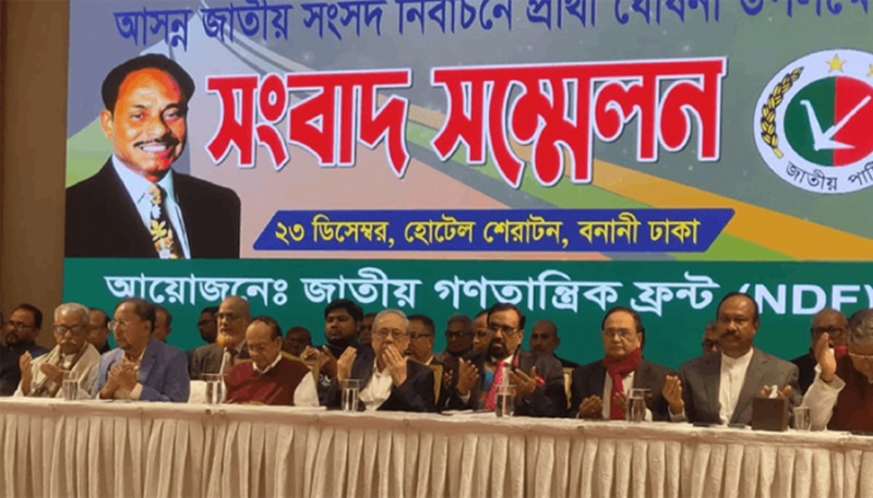 জাতীয় পার্টি ও জেপির নেতৃত্বে আত্মপ্রকাশ করা নতুন রাজনৈতিক জোট জাতীয় গণতান্ত্রিক ফ্রন্ট ১১৯ আসনে ১৩১ জন প্রার্থীর ঘোষণা করেছে।