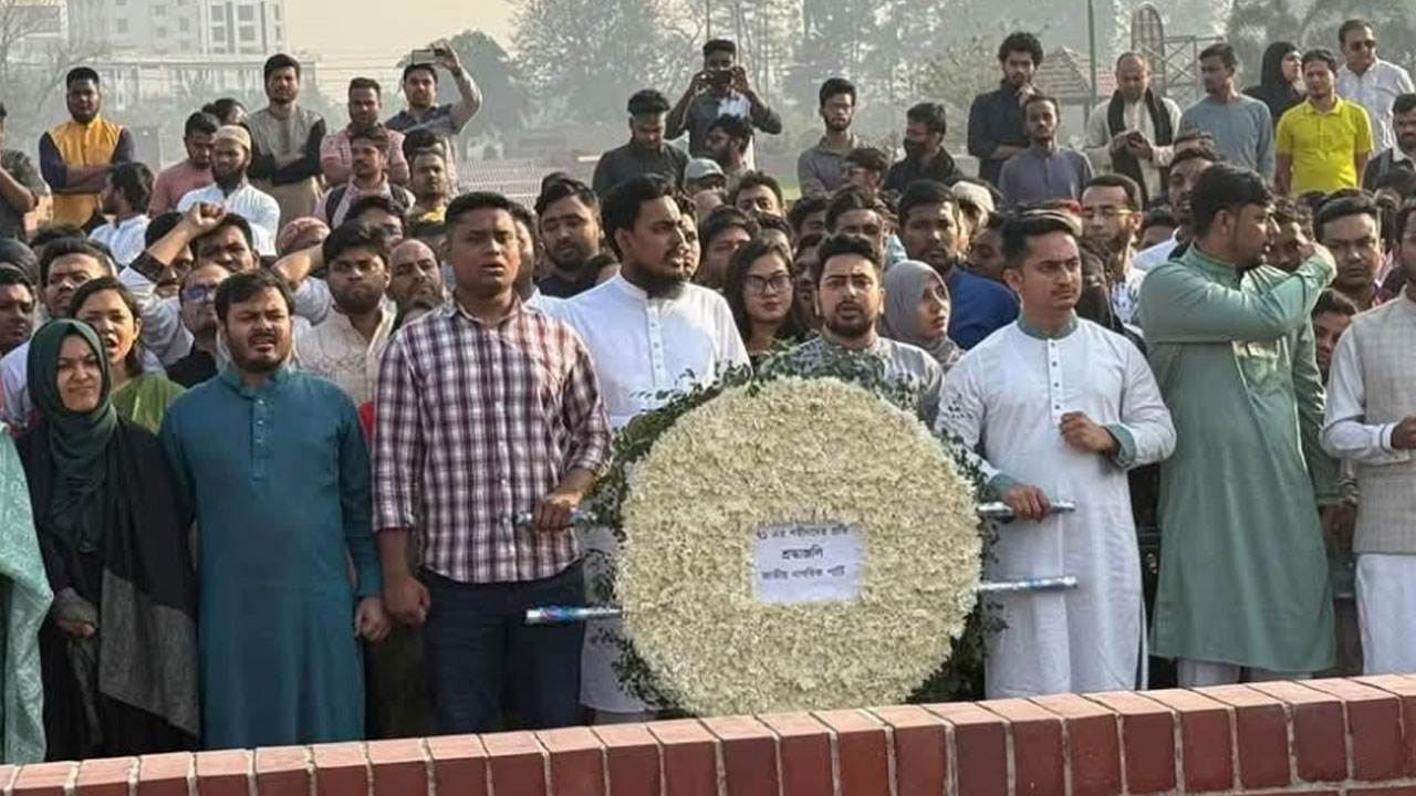এর আগে সকাল ৭টা ৪০ মিনিটের দিকে গাড়ি বহর নিয়ে জাতীয় স্মৃতিসৌধে প্রবেশ করেন জাতীয় নাগরিক কমিটির নেতারা। এসময় একাত্তরের বীর শহীদদের প্রতি ফুল দিয়ে শ্রদ্ধা জানিয়ে এক মিনিট নিরবতা পালন করেন তারা।
