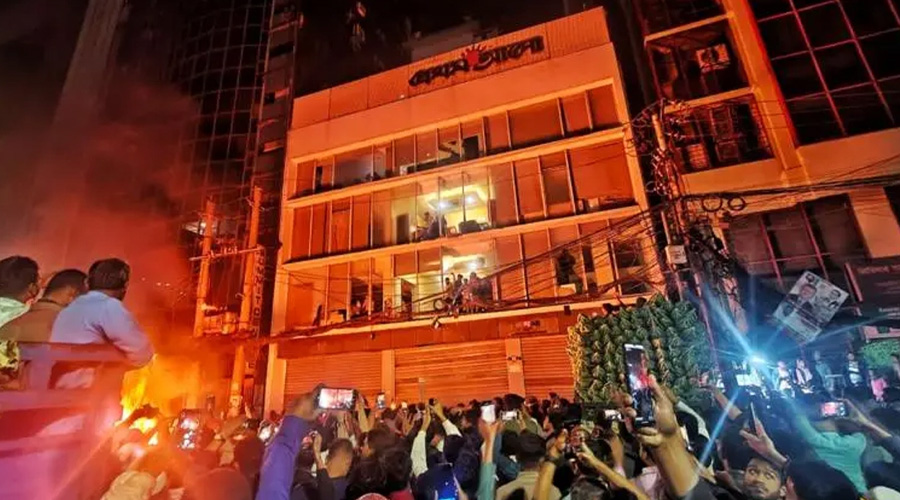 ঢাকা, ১৯ ডিসেম্বর – রাজধানীর কারওয়ান বাজারে অবস্থিত দেশের শীর্ষস্থানীয় দুই সংবাদমাধ্যম দৈনিক প্রথম আলো ও দ্য ডেইলি স্টার ভবনে ব্যাপক ভাঙচুর ও অগ্নিসংযোগ করেছে বিক্ষুব্ধ জনতা।