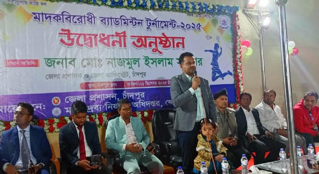 ‘খেলাধুলায় বাড়ে বল, মাদক ছেড়ে মাঠে চল’ এই শ্লোগানে চাঁদপুর ক্লাবে উদ্বোধন হলো মাদক বিরোধী ব্যাডমিন্টন টুর্নামেন্ট ২০২৫।