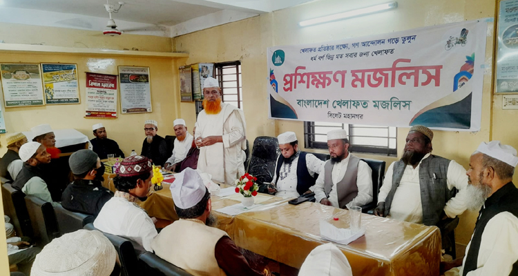 বাংলাদেশ খেলাফত সিলেট মহানগর শাখার উদ্যোগে সোমবার (২৪ নভেম্বর) দিনব্যাপী প্রশিক্ষণ মজলিস লালদিঘীরপাড়স্থ কার্যালয়ে শাখা সভাপতি আলহাজ্ব মাওলানা এমরান আলমের সভাপতিত্বে ও সাধারণ সম্পাদক মুহাম্মদ আব্দুল গাফফার এবং প্রশিক্ষণ সম্পাদক মুফতি আব্দুস সালামের পরিচালনায় অনুষ্ঠিত হয়।