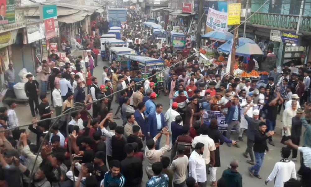 মুহূর্তের মধ্যে থানার মোড়ের পরিবেশ হয়ে ওঠে কিছুটা উত্তেজনাপূর্ণ ও কৌতূহলভরা। সাধারণ মানুষের মনে জাগে প্রশ্ন-“কী হবে, কী ঘটবে?” তবে সকল শঙ্কাকে ভুল প্রমাণ করে চিংড়ি প্রতীকের সমর্থকরা সম্পূর্ণ শান্তিপূর্ণভাবে, কোনো ধরনের উসকানি বা সংঘাতে না জড়িয়ে স্লোগান দিতে দিতে ধানের শীষের পথসভার স্থান অতিক্রম করে চলে যান।