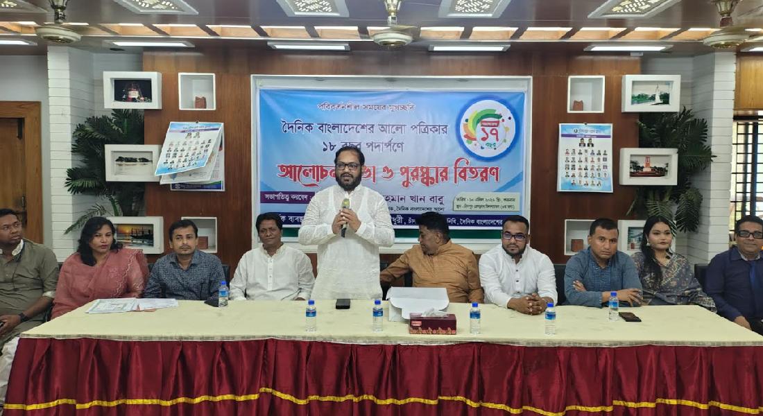 শুক্রবার (১০ এপ্রিল) সকালে দৈনিক বাংলাদেশের আলো পত্রিকার ১৮ বছর পদার্পণ উপলক্ষে চাঁদপুর জেলা প্রতিনিধি সাইদ হোসেন অপু চৌধুরীর সার্বিক ব্যবস্থাপনায় চাঁদপুর প্রেস ক্লাব মিলনায়তনে কেককাটা, আলোচনা সভা ও চিত্রাংকন প্রতিযোগিতায় বিজয়ীদের মাঝে পুরস্কার বিতরণ অনুষ্ঠানে প্রধান অতিথির বক্তব্যে তিনি এসব কথা বলেন।