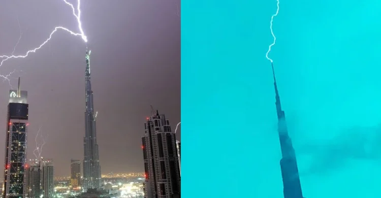 গতকাল থেকে টানা বর্ষণ ও ঝড়ো হাওয়া শুরু হয়েছে দুবাইয়ে। সেই সময়েই বজ্রপাত ঘটে বুর্জ খলিফায়।