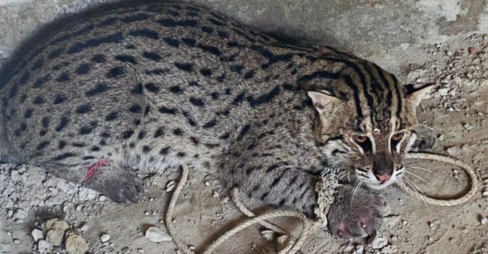 স্থানীয় বাসিন্দা মো. মহিউদ্দিন বলেন, গতকাল রবিবার সন্ধ্যার পর ওহিদুল ইসলামের মুরগি রাখার ঘরে মেছো বাঘটি ঢুকেছিলো। এরপর পরিবারের সদস্যরা বিষয়টি টের পেয়ে বাঘটিকে আটক করে দড়ি দিয়ে বেঁধে রেখেছে।