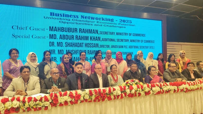 চাঁদপুর উইমেন চেম্বার অব কমার্স অ্যান্ড ইন্ডাস্ট্রির (CWCCI) আয়োজনে (‘Unlocking Chandpur Economic Potential: Opportunities and Challenges’) চাঁদপুরের বানিজ্য সম্ভাবনা ও প্রতিবন্ধকতা’ শীর্ষক সেমিনার অনুষ্ঠিত হয়েছে। শুক্রবার (২৮ নভেম্বর) সন্ধ্যায় রাজধানীর গুলশান ক্লাবের ল্যাম্বডা হলে এই ব্যবসায়িক সংলাপ অনুষ্ঠিত হয়।