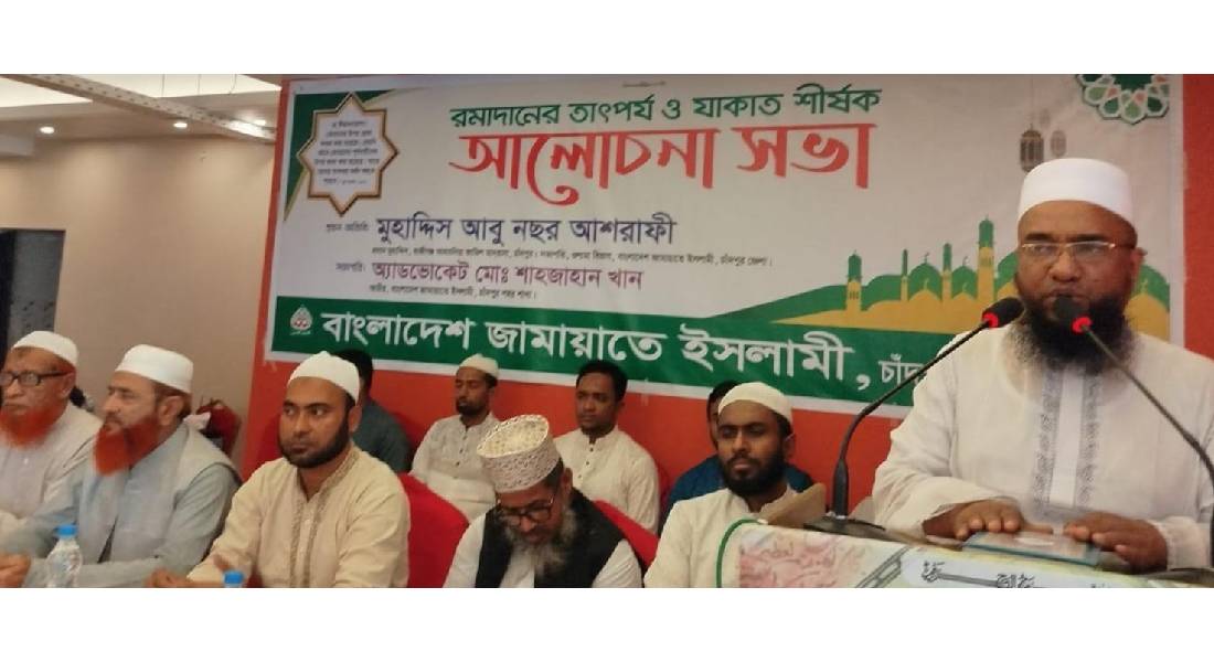 বাংলাদেশ জামায়াতে ইসলামী চাঁদপুর শহর শাখার উদ্যোগে রমাদানের তাৎপর্য ও যাকাত শীর্ষক আলোচনা সভা অনুষ্ঠিত হয়েছে। ২৮ ফেব্রুয়ারি শুক্রবার বিকাল ৩ টায় চাঁদপুর শহরস্থ ইউরেশিয়া কনভেনশন হলে এ আলোচনা সভার আয়োজন করা হয়।