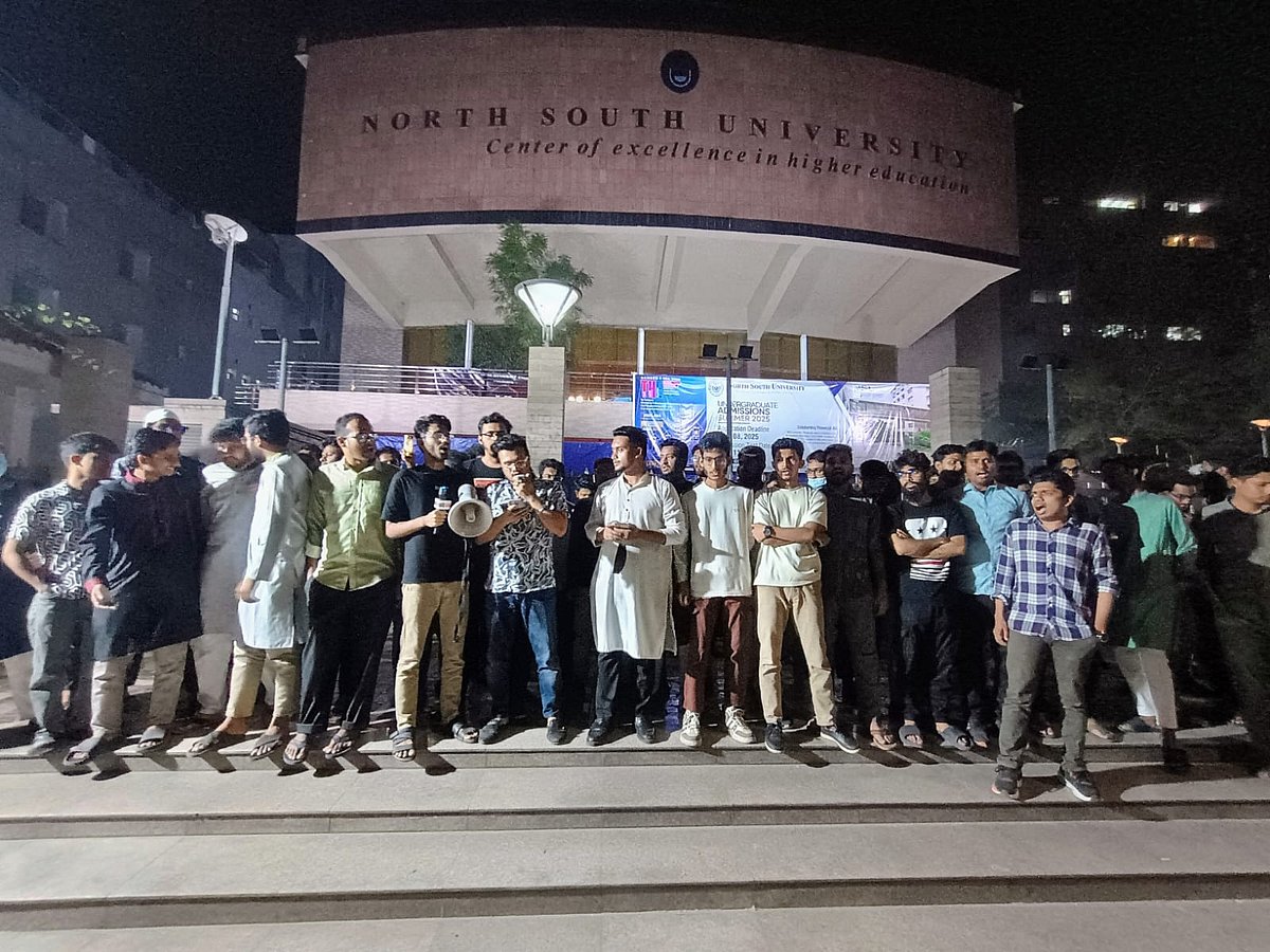 বিক্ষোভকারীরা প্রথমে এনএসইউর ৮ নম্বর গেটের সামনে জড়ো হন। সেখানে কয়েকজন বক্তৃতা করেন। বক্তৃতার ফাঁকে ফাঁকে স্লোগান চলে। তাঁরা ‘শাহবাগীরা বাংলা ছাড়’, ‘শাহবাগ না বাংলাদেশ, বাংলাদেশ, বাংলাদেশ’ প্রভৃতি স্লোগান দেন। এরপর এনএসইউ গেট থেকে একটি মিছিল বসুন্ধরা আবাসিক এলাকার দু-একটি সড়ক প্রদক্ষিণ করে আবার সেখানে এসে শেষ হয়।