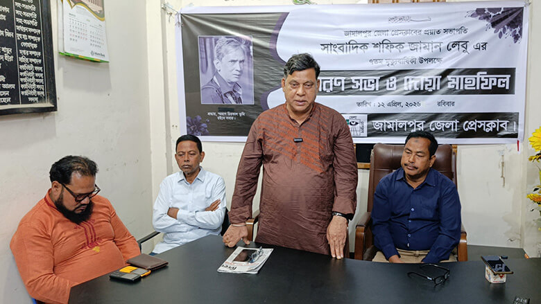 জামালপুর জেলা প্রেসক্লাবের প্রয়াত সভাপতি কবি ও সাংবাদিক শফিক জামান লেবুর ৭ম মৃত্যুবার্ষিকীতে স্মরণ সভা ও দোয়া মাহফিল অনুষ্ঠিত হয়েছে। জামালপুর জেলা প্রেসক্লাব রবিবার (১২ এপ্রিল) রাতে প্রেসক্লাব মিলনায়তনে এই স্মরণ সভা ও দোয়া মাহফিলের আয়োজন করে।