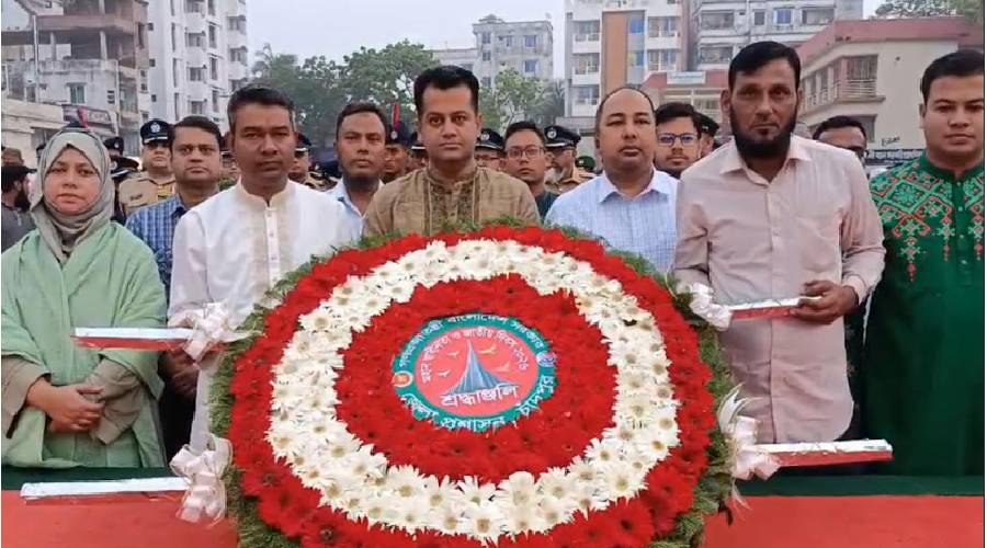 জেলা প্রশাসনের পক্ষে পুষ্পস্তবক অর্পণ করেন জেলা প্রশাসক (ডিসি) মো. নাজমুল ইসলাম সরকার, পুলিশ প্রশাসনের পক্ষে পুলিশ সুপার (এসপি) মো. রবিউল হাসান, জেলা মুক্তিযোদ্ধা সংসদের পক্ষে জেলা প্রশাসক ও বীর মুক্তিযোদ্ধারা, জেলা পরিষদের পক্ষে জেলা পরিষদের প্রশাসক, নৌ পুলিশের পক্ষে পুলিশ সুপার (এসপি) সৈয়দ মোশফিকুর রহমান।