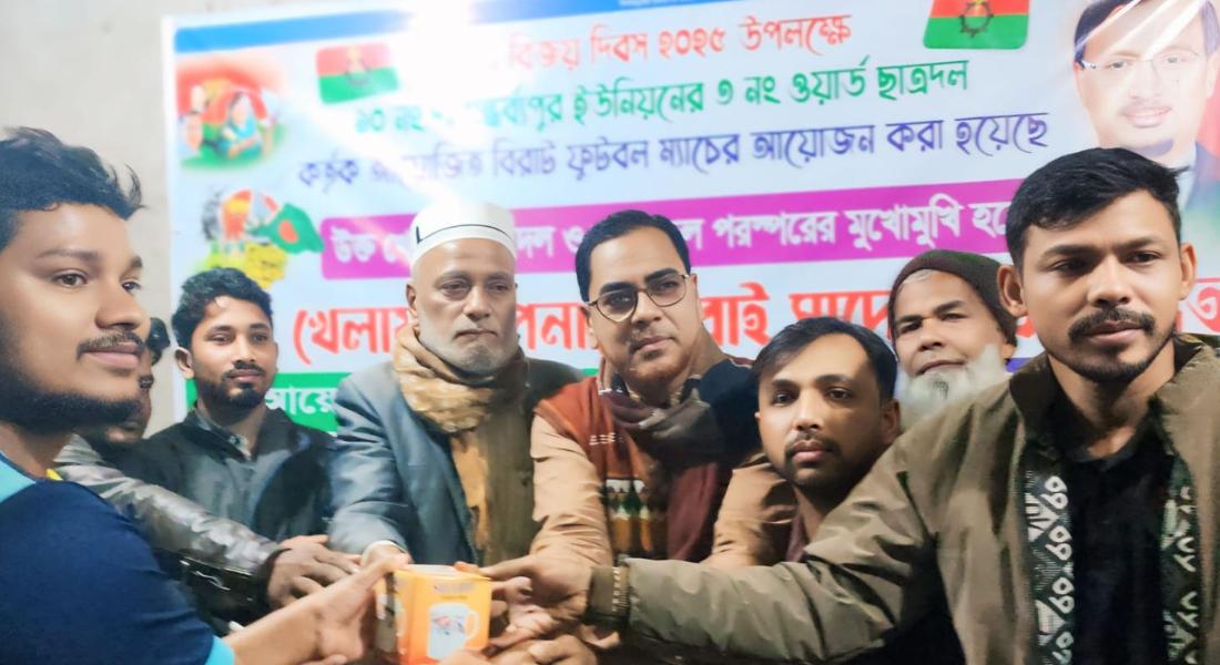 বিরাট ফুটবল টুর্ণামেন্ট ও পুরস্কার বিতরণ অনুষ্ঠানে ১০ নং গন্ধর্ব্যপুর দক্ষিণ ইউনিয়নের ৩নং ওয়ার্ড ছাত্রদলের নেতাকর্মী সমর্থক বৃন্দ, এলাকার গণ্যমান্য ব্যক্তিবর্গ ও সুধী সমাজ উপস্থিত ছিলেন। অতিথিরা বক্তব্যের মাঝে বলেন, আগামীর প্রজন্মকে মাদক ও ইভটিজিং মুক্ত রাখতে খেলাধুলার বিকল্প নেই। সৃজনশীল খেলা কে সবাই আগ্রহের শহীদ নিতে হবে। তাহলে সমাজে অপকর্ম ধীরে ধীরে কমে আসবে।
